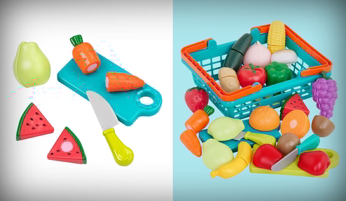 Velcro (cırt cırt) sistemli meyve–sebze oyuncakları çocukların el becerisini güçlendirir.
